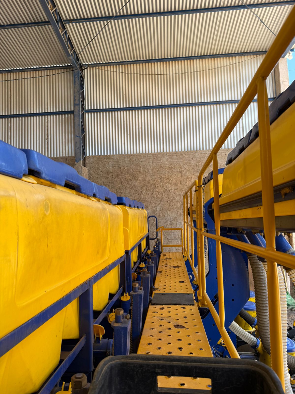 10 linhas de 50cm, largura de transporte 6.30 metros, capacidade de adubo 1560 litros, semente 500 litros.